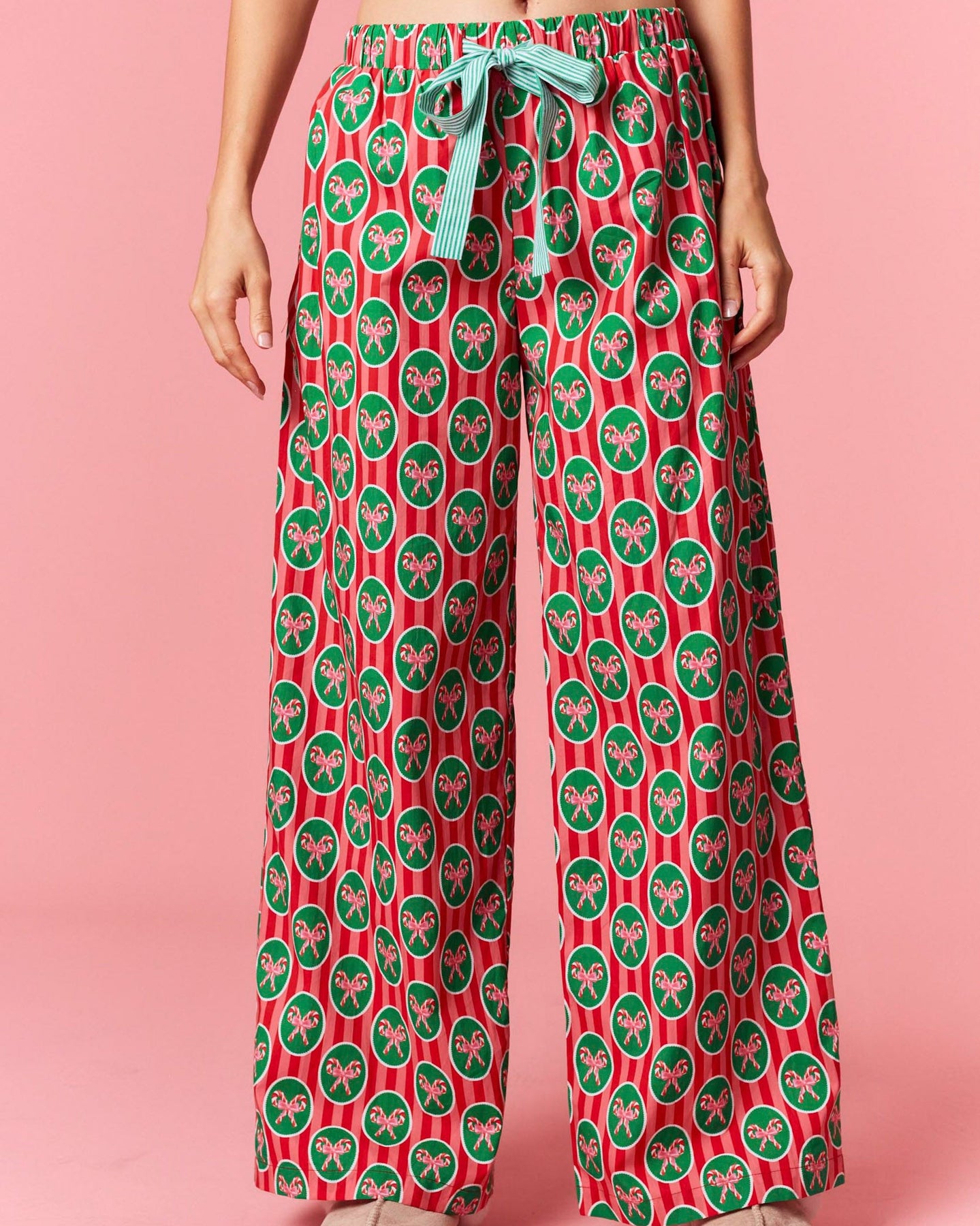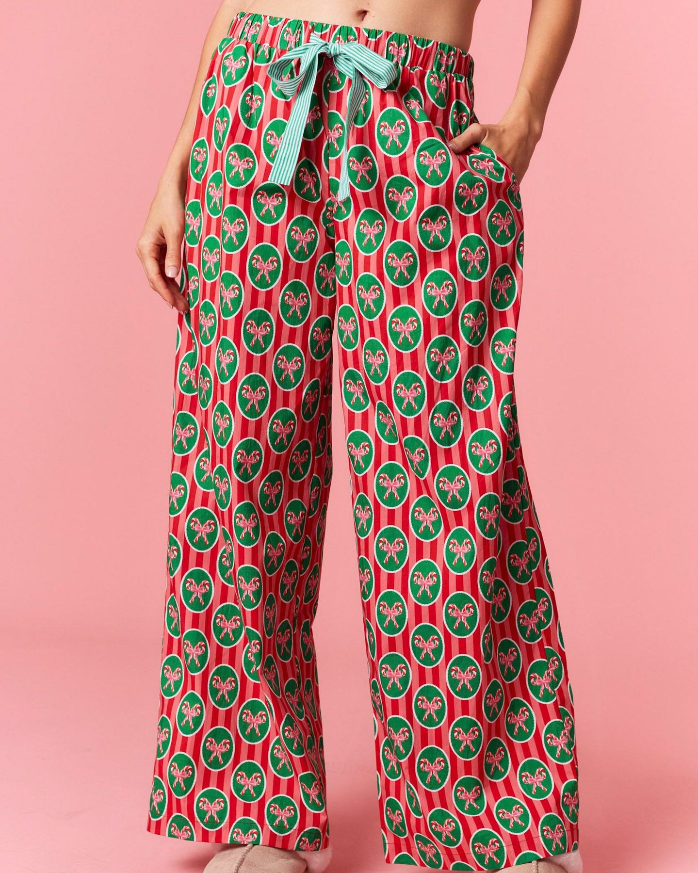 Meet the holiday lounge pants that are almost too cute to save for Christmas morning. Our Candy Cane PJ Bottoms feature a sweet pink-and-ivory nutcracker print with a wide-leg silhouette that feels floaty, comfy, and oh-so-festive. The soft elastic waistband and oversized gingham bow tie add that extra feminine touch we all love (because why shouldn’t loungewear be charming?).