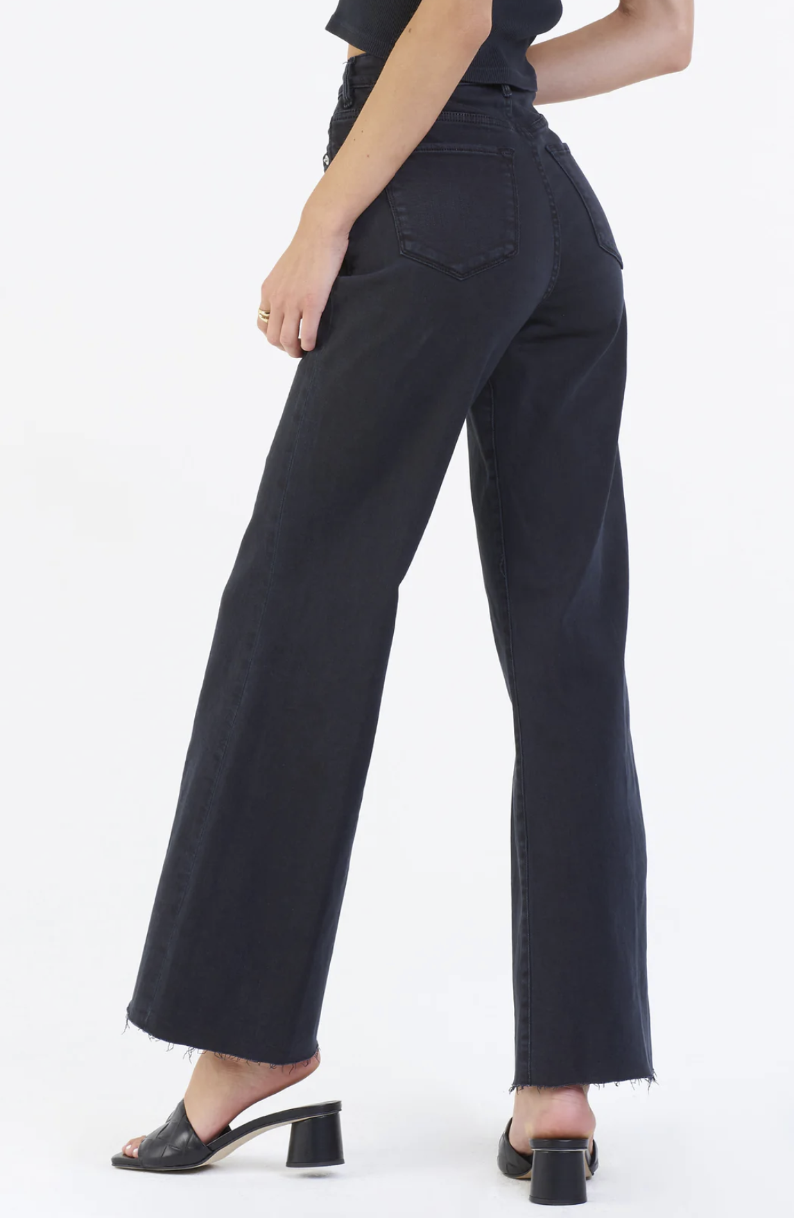 The Fiona Jeans in black are perfect for a timeless, classic look. Crafted from a stretch denim fabric, they are designed for comfort with a high rise and wide leg fit. Featuring a deep, cut-off hem and soft, brushed finish, they are perfect for everyday wear.