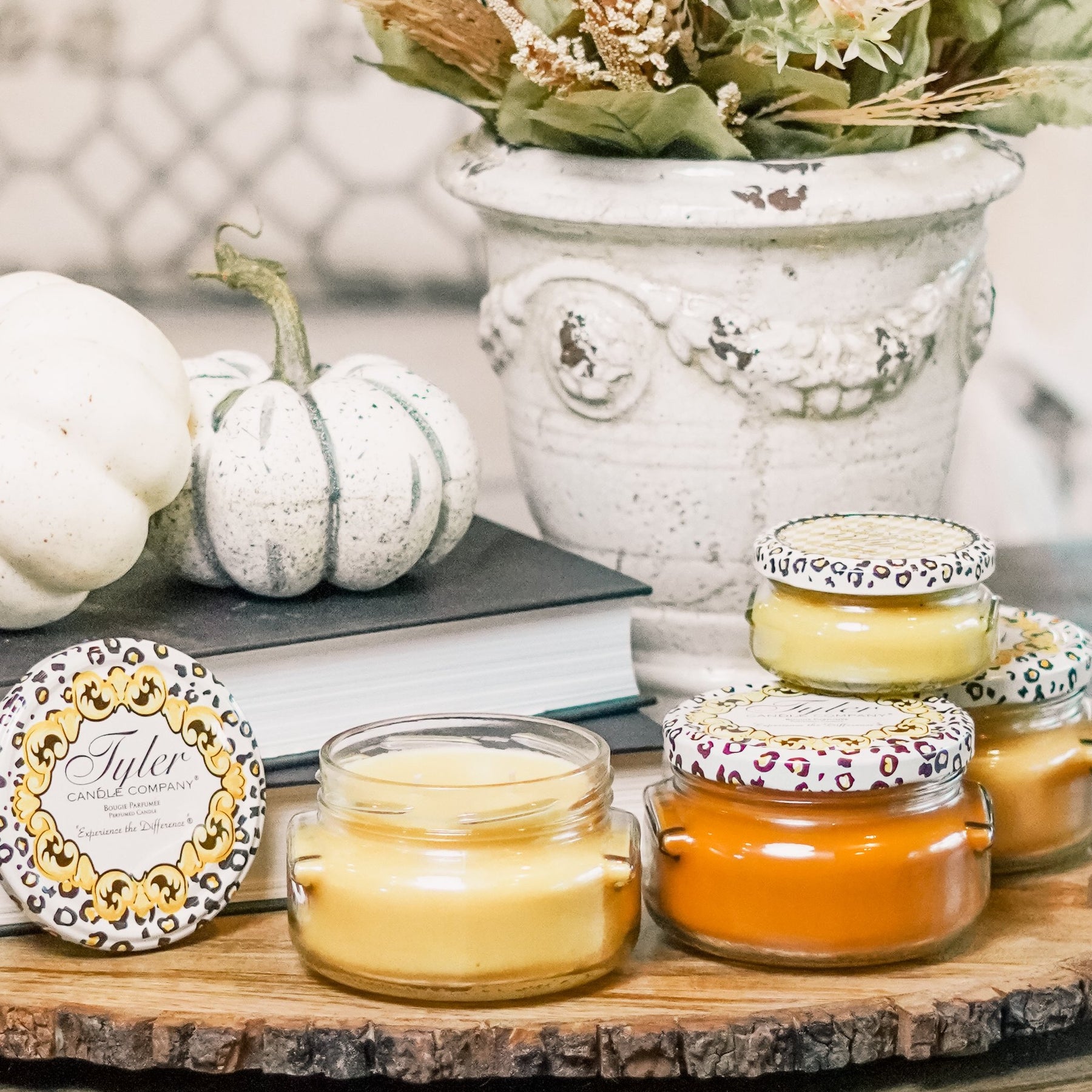 Say hello to fall with the Tyler Candle Company. Their unique blend of soy and paraffin wax has produced one of the finest scented candles on the market. Tyler uses the finest quality waxes and opulent fragrance oils available to create the ultimate aroma experience. Each candle is hand-poured, ensuring even burning and maximum fragrance saturation. All jars are guaranteed to fragrance a room in minutes!