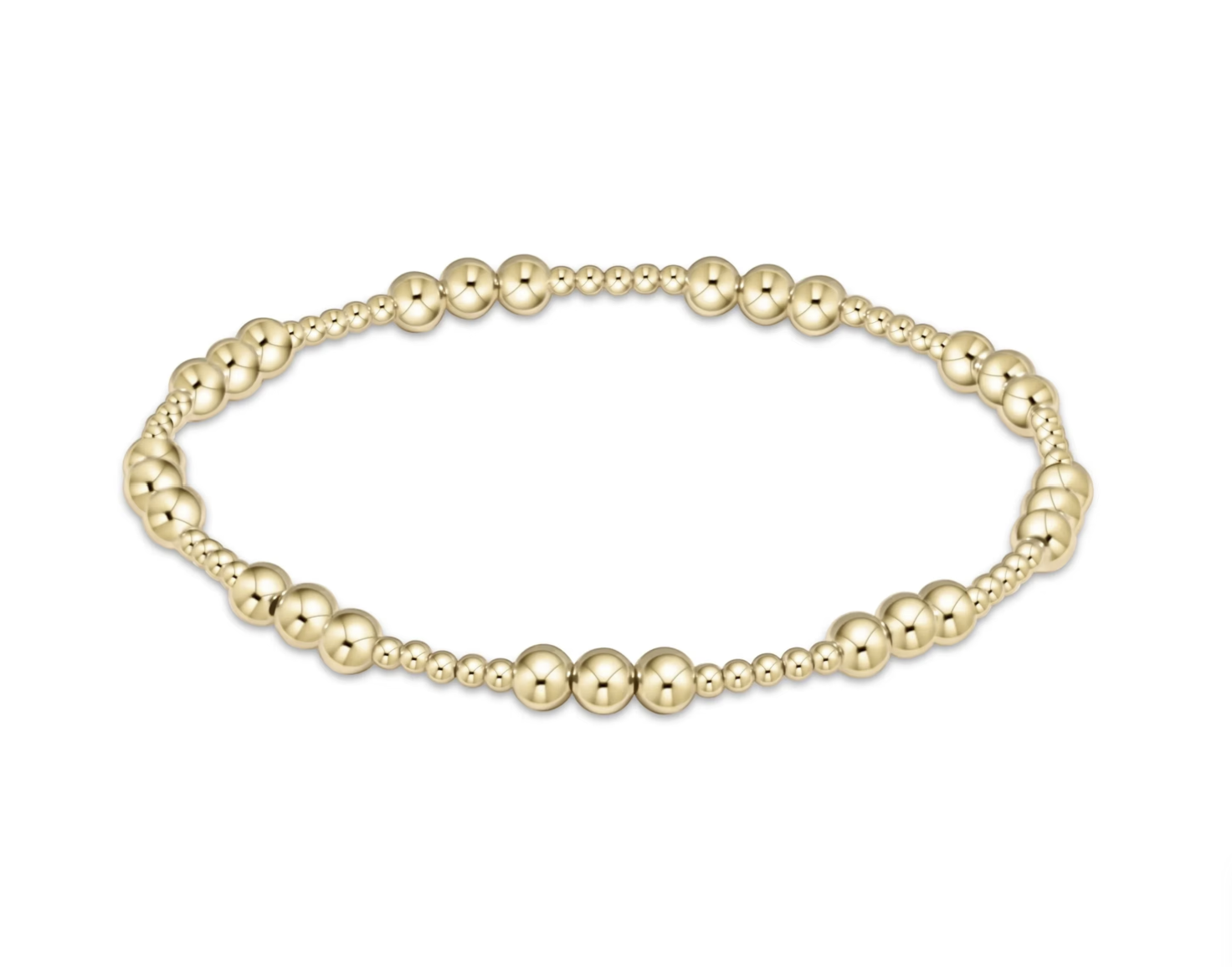 This stretch bracelet slips on effortlessly and layers beautifully with other pieces or shines solo as a refined accent. Whether you choose the subtle whisper of 4 mm or bold presence of 6 mm, each bracelet is plated to capture that warm golden glow and designed for lasting elegance.
