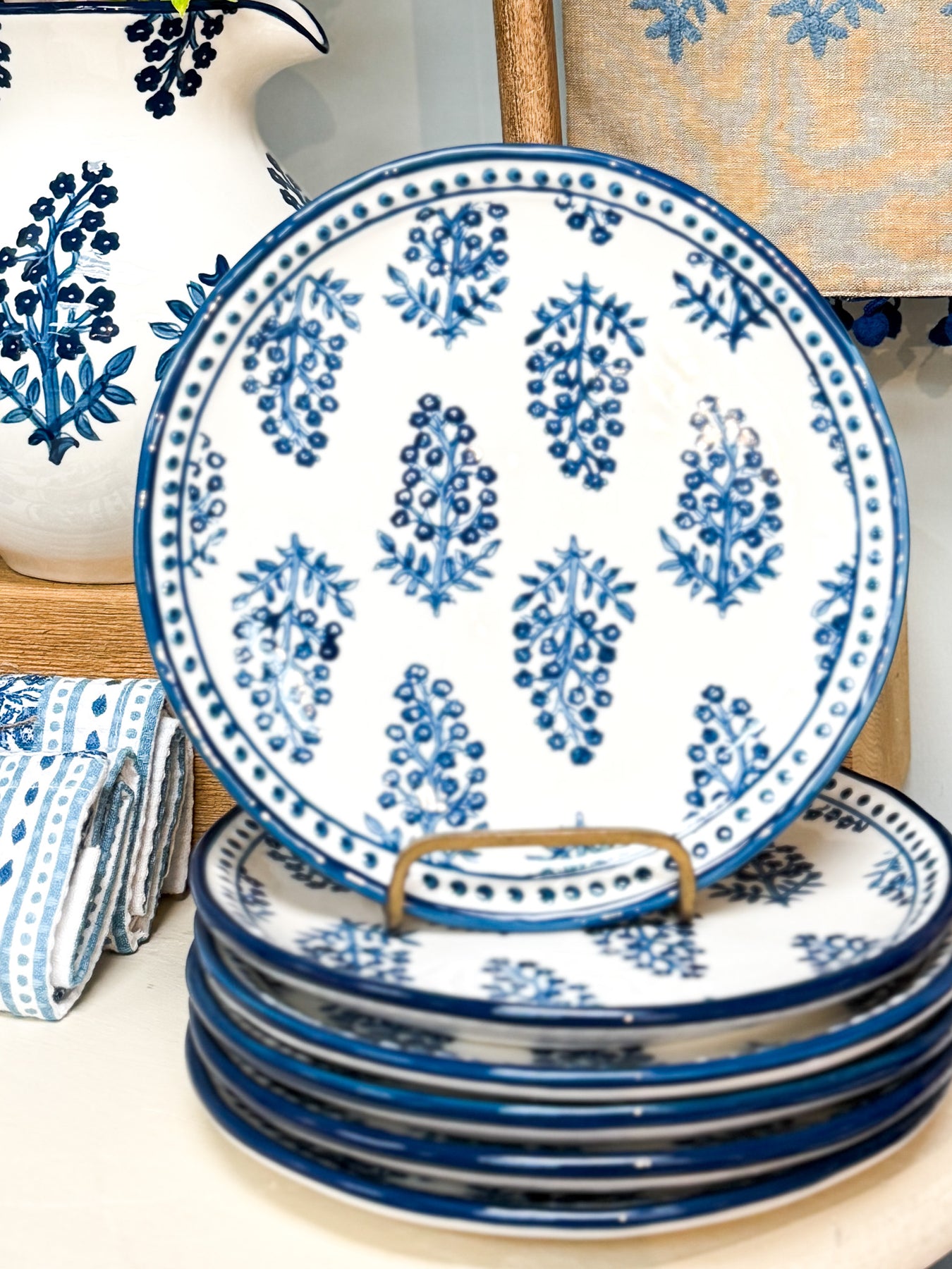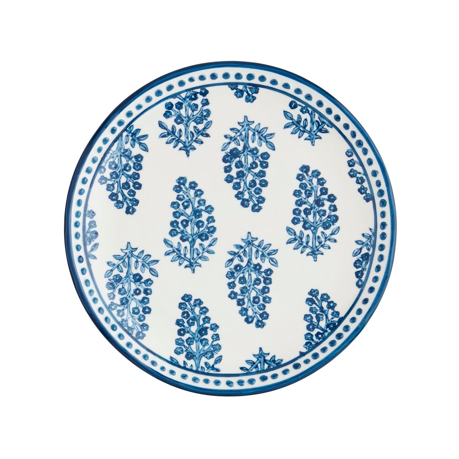 Elevate your everyday table with timeless charm. This handcrafted ceramic salad plate features a delicate blue floral block print design inspired by traditional Indian patterns. The crisp white background and soft indigo tones add a fresh, coastal feel to any gathering—whether you're serving summer greens or holiday sides.